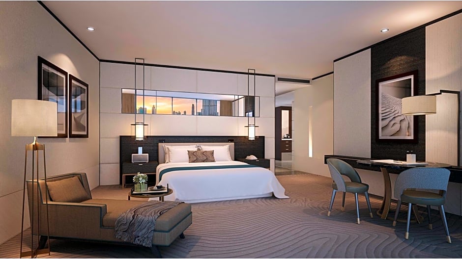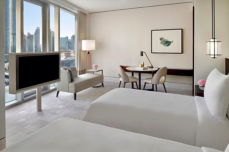 Located on high floors, this room features views of the Burj Khalifa. The room also offers access to the Club Lounge where food and beverages are served throughout the day. Club Benefits: Complimentary food and drinks based on the assigned operation timings and designated outlets. Complimentary Late Check-out at 4 PM, Complimentary shoe polish service, Complimentary pressing of one shirt and one suit per room upon arrival only Separate business room with complimentary use of computers, Library with a selection of books, newspapers, and magazines.